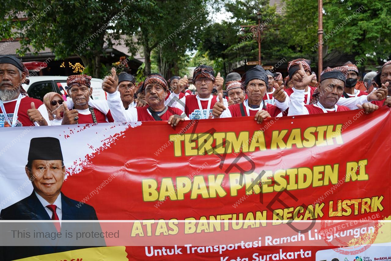 JAKARTA RAYA – Yayasan Gerakan Solidaritas Nasional (GSN) kembali membagikan becak listrik bantuan dari Presiden Prabowo Subianto. Kali ini, sebanyak 200 unit dibagikan kepada penarik becak lanjut usia di Kota Solo, Jawa Tengah. Para penerima pun menyambutnya dengan sukacita dan menyampaikan terima kasih kepada Prabowo.