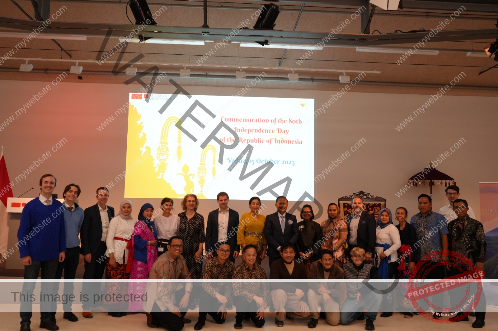 Setelah seminar, acara dilanjutkan dengan Resepsi Diplomatik memperingati 80 Tahun Kemerdekaan Republik Indonesia. Acara ini dihadiri pejabat pemerintah, anggota parlemen, pelaku bisnis, akademisi, dan korps diplomatik di Liechtenstein. Hadir sebagai tamu kehormatan, Christine Lingg dari Kementerian Luar Negeri Liechtenstein, mewakili Wakil Perdana Menteri sekaligus Menteri Luar Negeri, Lingkungan, dan Kebudayaan Liechtenstein, Sabine Monauni.