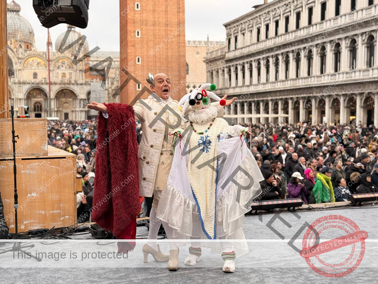 Ikon kota, Piazza San Marco, menjadi pusat perayaan dengan panggung megah bernuansa Olimpiade. Sejak pukul 11.00 hingga malam hari, alun-alun legendaris ini dipenuhi pertunjukan musik, seni, dan atraksi spektakuler yang menyedot perhatian ribuan pengunjung dari berbagai negara.