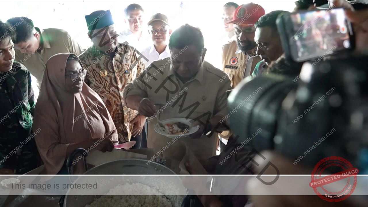 JAKARTA RAYA— Presiden Republik Indonesia Prabowo Subianto sempat sepiring masakan ikan tongkol di dapur pengungsian guna memastikan kualitas dan kecukupan gizi makanan bagi para warga di Posko Pengungsian Bencana Desa Balee Panah, Aceh, Senin (7/12).