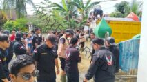 Personel TNI melaksanakan perbantuan pembangunan huntara. Kegiatan ini dikerjakan oleh personel Kodam XX/TIB dari Kodim 0304/Agam, Yon TP/Singgalang, dan Denzipur 2/PS.