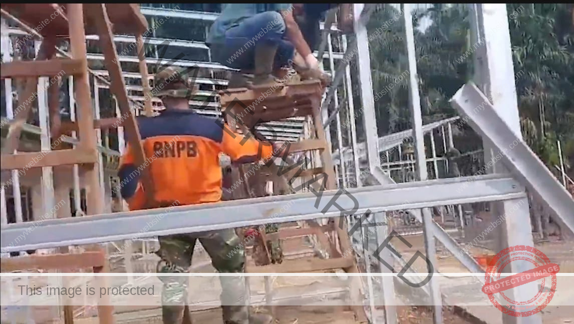 JAKARTA RAYA— Rangka untuk hunian sementara (huntara) sebagian sudah terpasang di Lapangan Bola Nagari Salareh Aia, Jorong Kayu Pasak, Kecamatan Palambayan, Kabupaten Agam, Sumatera Barat. Progres pembangunan huntara semakin terlihat.