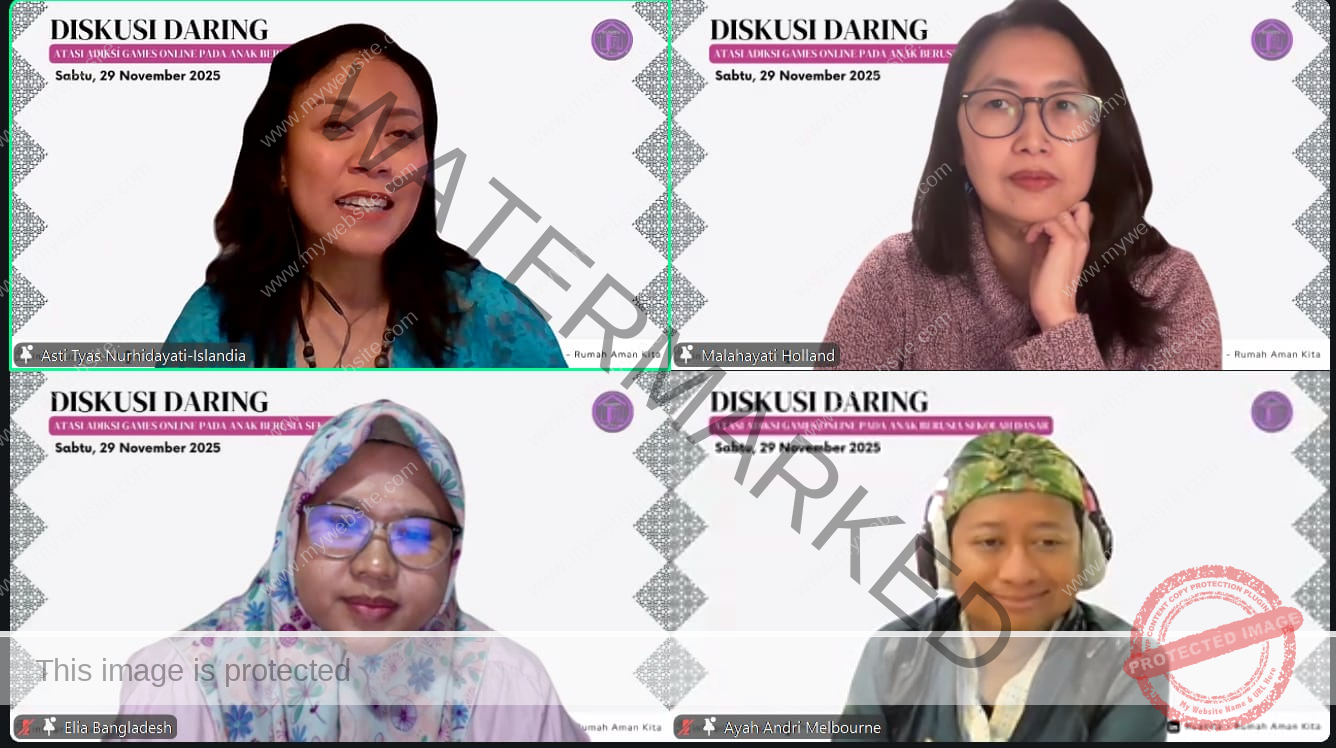 JAKARTA RAYA — Ruanita Indonesia sukses menyelenggarakan diskusi daring bertajuk “Atasi Adiksi Game Online pada Anak Usia Sekolah Dasar” pada Sabtu (29/11/2025). Kegiatan yang digelar melalui platform Zoom ini diikuti peserta dari berbagai negara, terdiri atas orang tua, guru, pemerhati anak, hingga mahasiswa yang peduli terhadap isu pendidikan dan perkembangan anak di era digital.