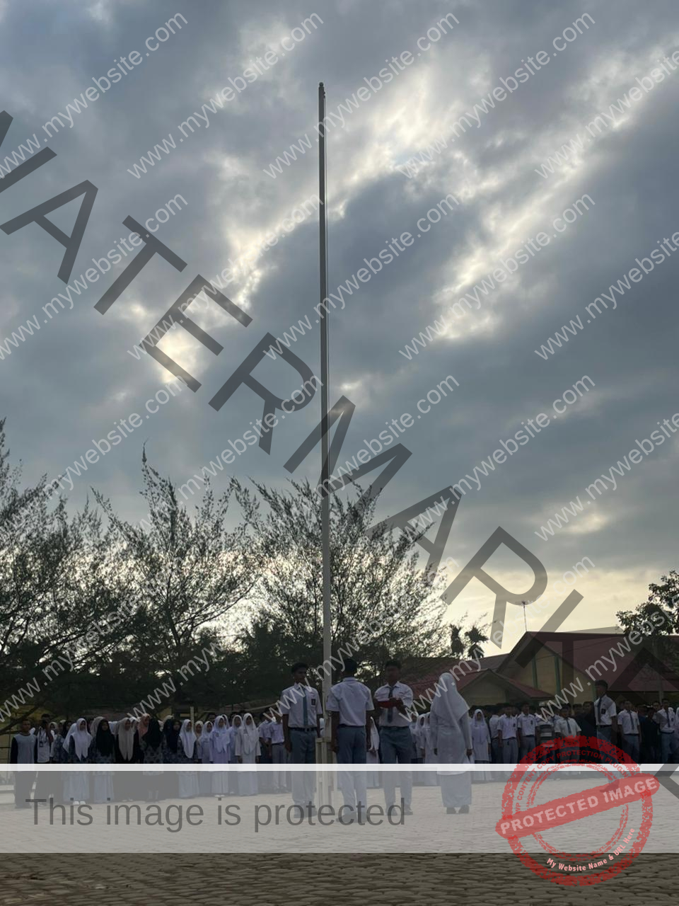 Tak hanya siswa, para guru dan tenaga pendidik juga telah kembali bertugas. Seluruhnya kemudian berkumpul di lapangan sekolah untuk menggelar upacara bendera untuk pertama kalinya sejak bencana terjadi.